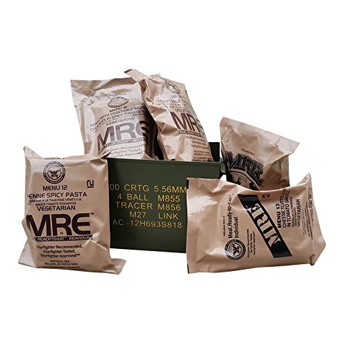 -. Title : Brand New MRE Meal Pack Variety with Free Fat 50 Cal MilSpec Ammo Can