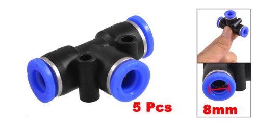 5 Pcs 8mm to 8mm 3 Ways Push in One Touch Tee Shaped Quick Fittings