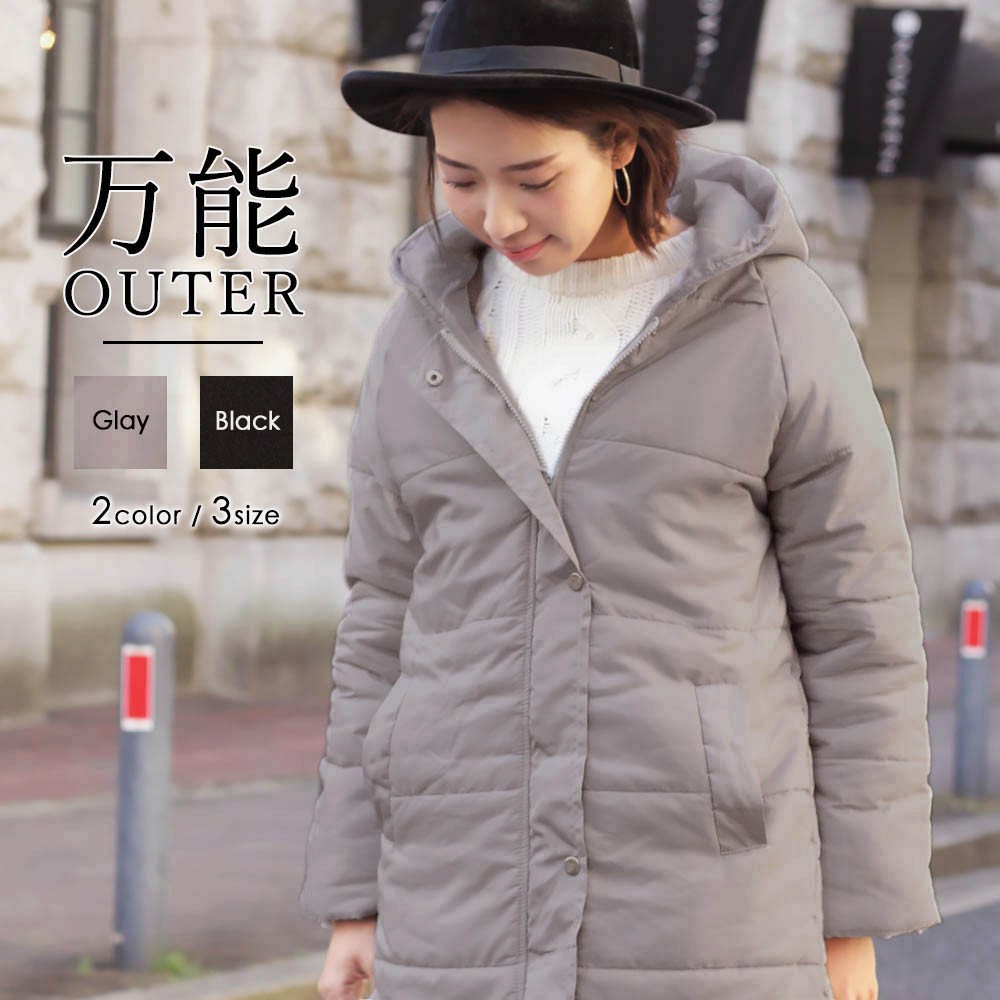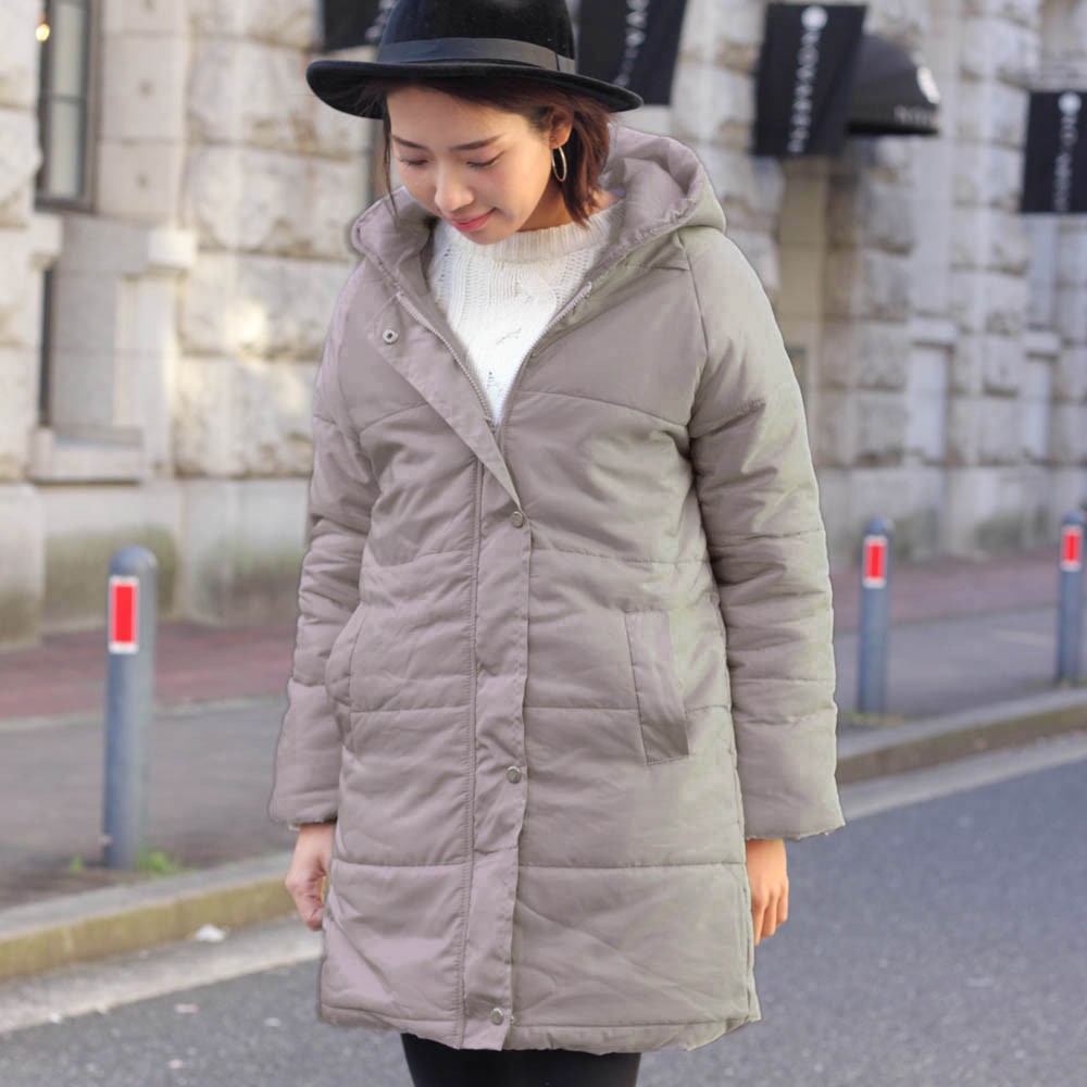 もこもこ中綿で冬でも暖かいフード付きロング丈キルティングコート