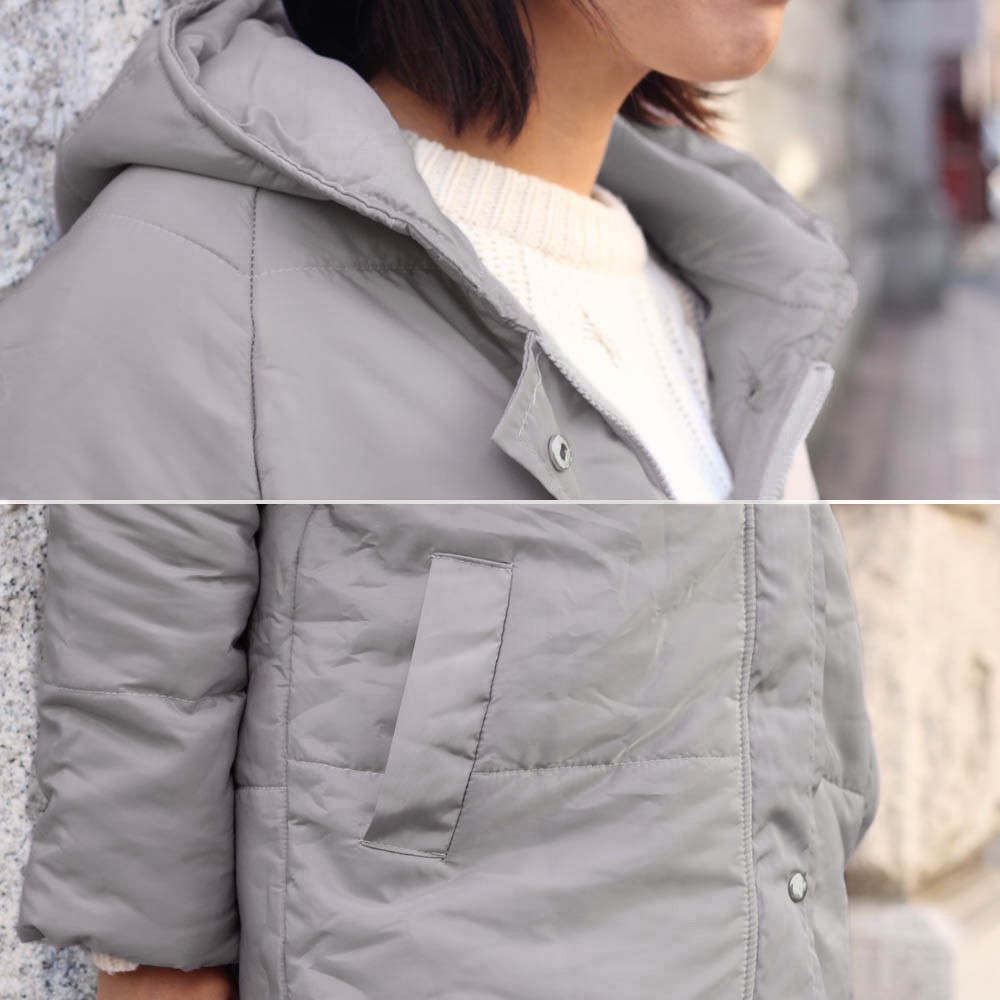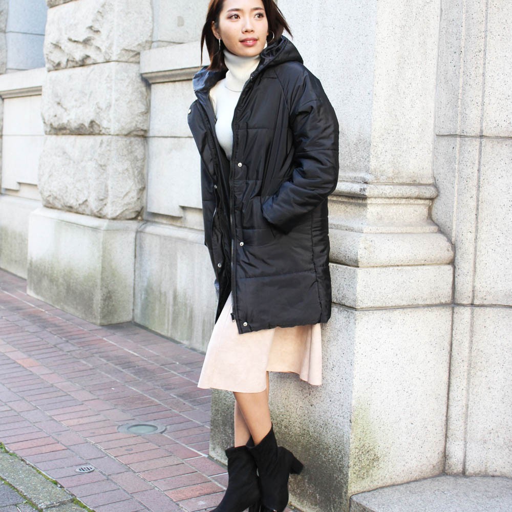 コメント:膝にかかるぐらいのロング丈で大人上品の中綿コートです。ゆったりサイズ感は着心地がバツグン、 華奢な女性の魅力を感じさせます。寒がりさんは中にいろいろ着こんでいてもokです。軽量タイプなので、長時間着ても肩は凝らずに疲れにくいです。
