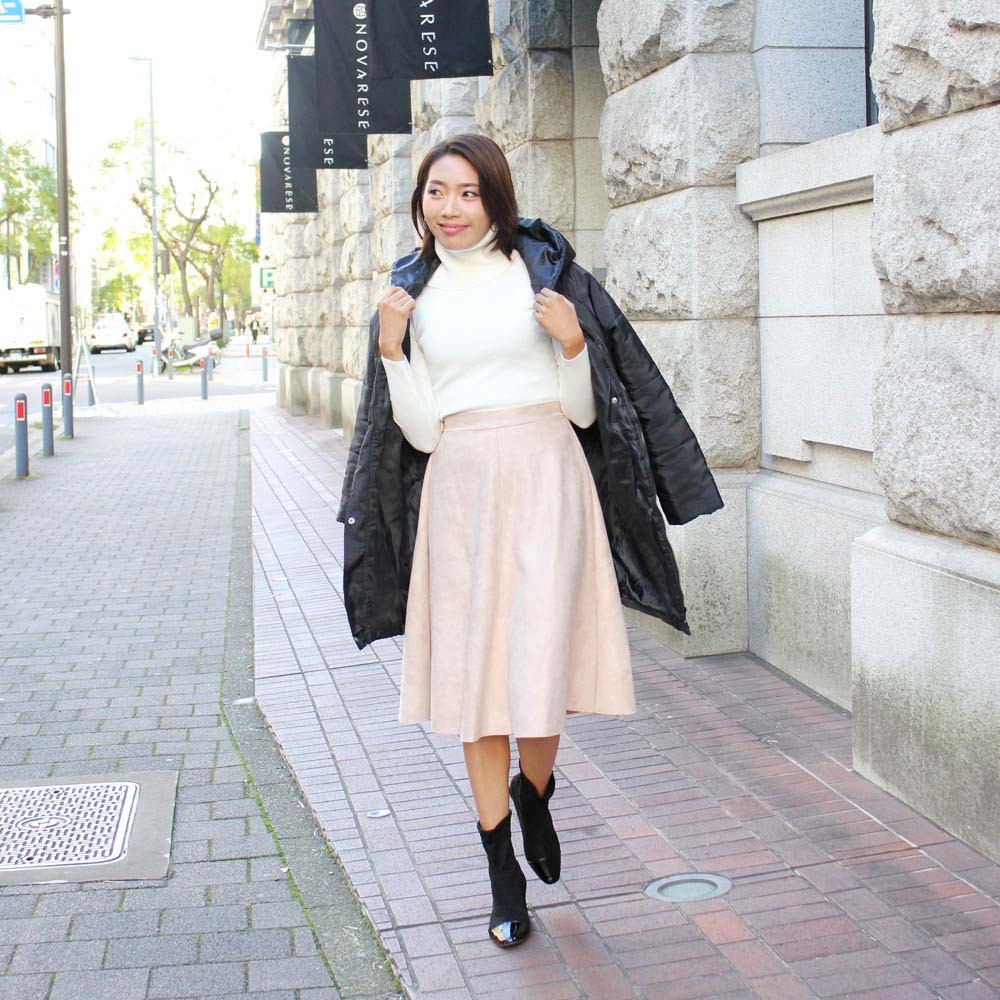 レディライクなデザインなので、重くなりがちな秋冬でもすっきり見える