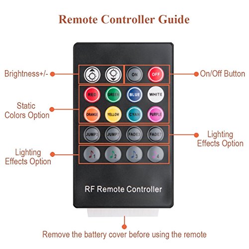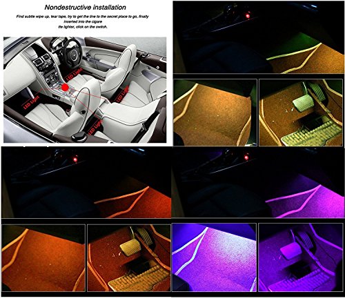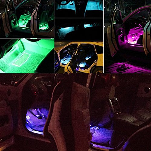 - ✅ 8 Color RGB LED Car Interior Underdash Lighting Kit, Wireless Music Remote Control enables you to change the color and adjust the brightness as you wish, also Sound-activated Function allows you to enjoy the fun with the color changing following your car stereo music rhythm as well as your voice