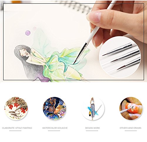 9pcs Paint Brush Long-needle-Sharp Liner Long Fine Line Letterer Paintbrush for Watercolor Lettering Nail-art Detail Painting 0# 3pcs 00# 3pcs 000# 3pcs
