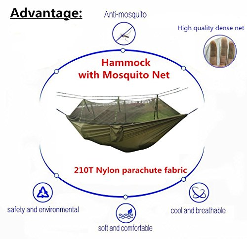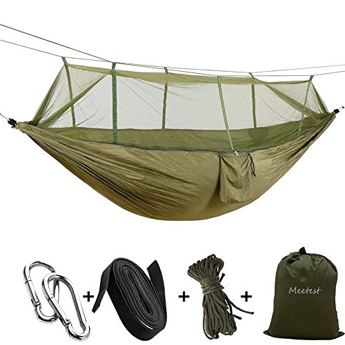 Camping Hammock -Lightweight Single & Double Hammocks with Mosquito Net can Withstand 440 LBS Portable Outdoor Travel Parachute Fabric Nylon for Indoor,Hiking,Backpacking,Backyard by Meetest