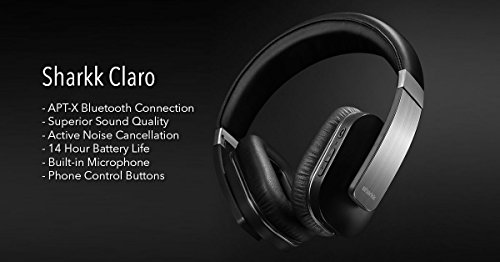 Sharkk Claro Wireless Headphones Active Noise Cancelling Bluetooth Headphones with Advanced Apt-X Technology 14 Hour Battery Built-In Mic and Super Soft Ear Cushions