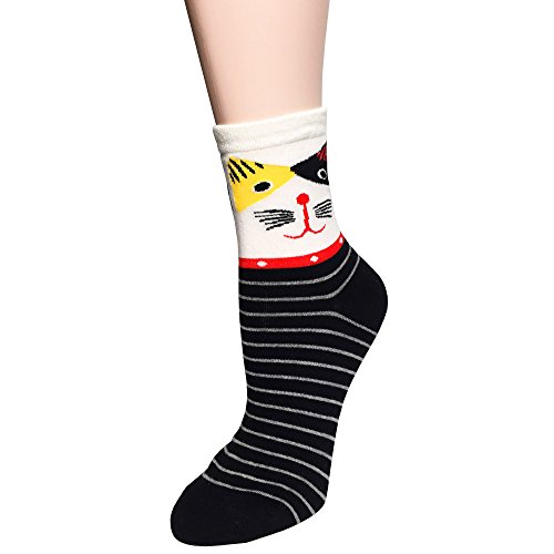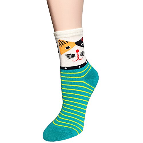 - Feature : Material: 75% Cotton,15% Nylon,5% Spandex,5% Others / High quality cotton crew socks,colorful stripe and cat pattern / One size fits Size: 22cm~26cm (CN); 34~42 (EU); 7~11 (US); 5~9 (UK) / Super soft and comfortable,flexible and scalable / Full of elasticity,Hand/Machine Wash Cold Wash inside out and then air dry to reduce shrinkage
