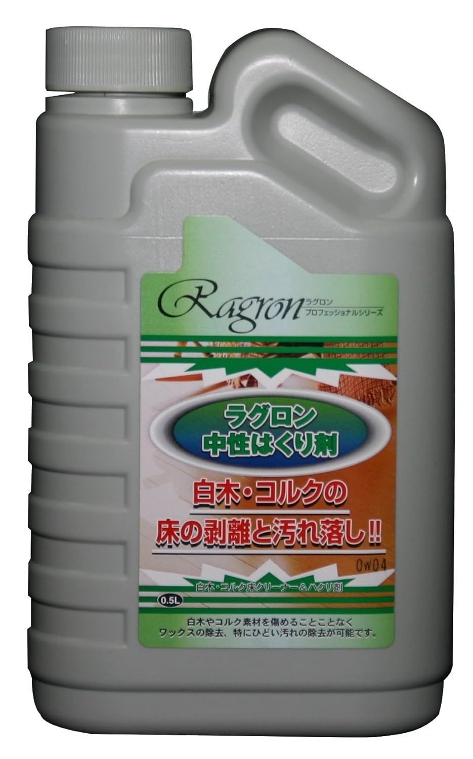 原産国 : 日本 商品サイズ (幅X奥行X高さ) : 10.5×4.8×17cm 質量 : 640 材質 : 界面活性剤(1%ポリオキシエチレンアルキルエーテル)、溶剤 用途:白木床・コルク床の汚れ落し(ひどい汚れ:5~10倍に希釈/通常の汚れ:10~20倍に希釈)、白木床・コルク床のワックス剥離(原液で使用) 白木・コルク床の持ち味を変質させることなく汚れを落とすクリーナー&ハクリ剤。白木やコルク素材を傷めることなくワックス(ラグロンコルク床用樹脂ワックス及びラグロン白木床用樹脂ワックス皮膜)の除去が可能。従来の白木用ワックス(ロウワックス)の剥離にも使用可能。