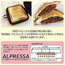 ●IH・ガス火対応●表面加工:フッ素樹脂塗膜加工●はさんで焼くだけ●特厚アルミニウム合金製で熱伝導に優れ、特許構造アルプレッサにより熱を均一に伝えて焼きムラを防ぎ、保温性にも優れる●取扱説明書兼レシピ付●着脱式で洗いやすく、小さなフライパンとしても使うことが出来る