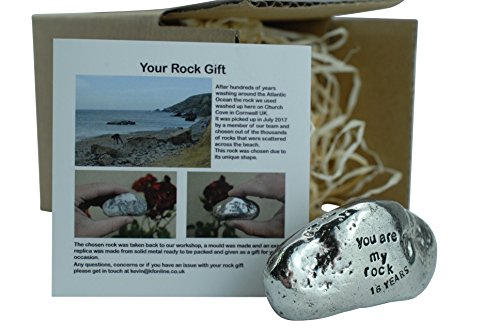 16th Anniversary You Are My Rock Gift Idea - Solid Metal Heavy Polished Rock Gift for 16 Year Anniversary