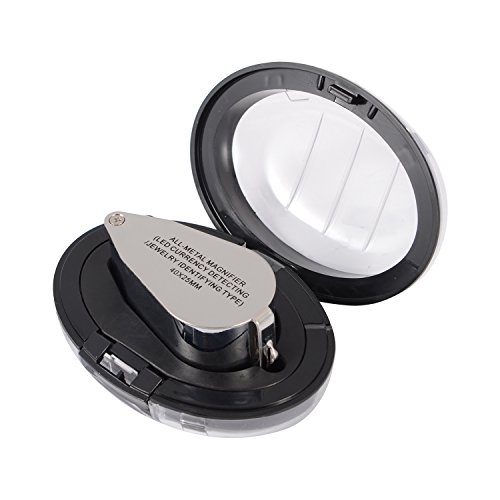 40X Full Metal Illuminated Jewelers Magnifier,XYK Best Pocket Folding Magnifying Glass Jewelers Lens Eye Loupe with LED and UV Light(LED Currency Detecting/Jewelry Identifying Type)