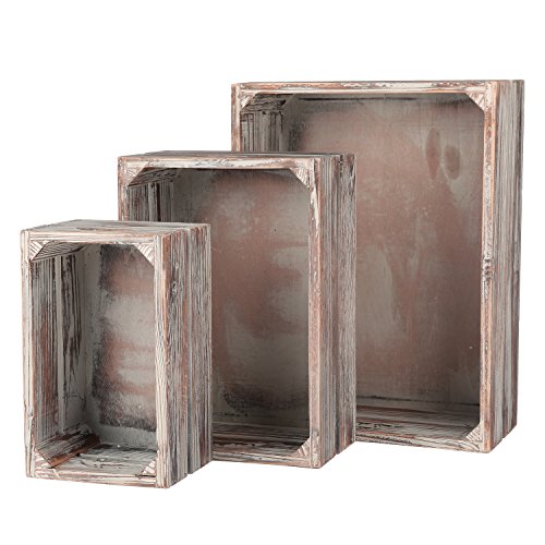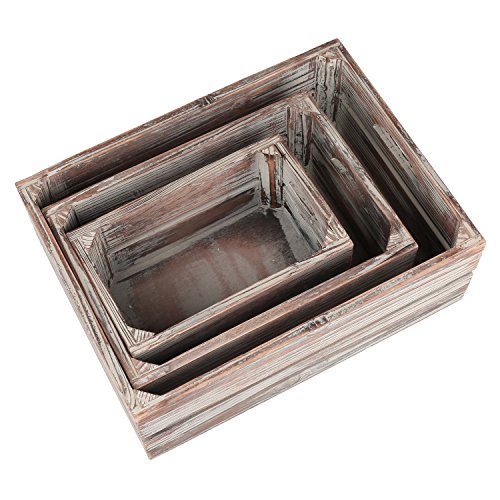 Set of 3 Country Rustic Finish Brown Wood Nesting Boxes / Tabletop Jewelry Storage Containers - MyGift
