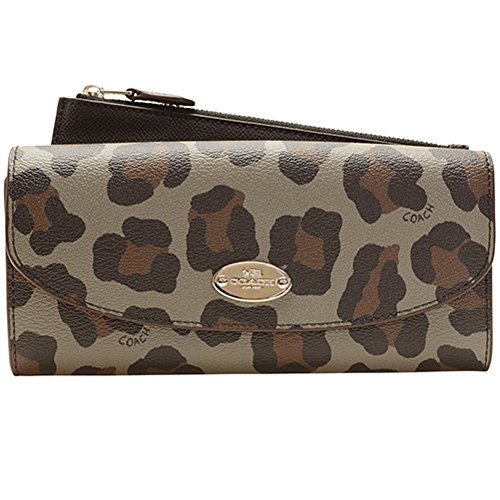 -. Feature : PVC Ocelot P.R.Int Coated Canvas / Flap snap closure / Interior features 12 card slots, 1 zip compartment in the middle and 1 full length bill compartment / Outside back features full length slip pocket with removable zippered pouch / Approx. 8" (L) x 4" (H) x 1.5" (W)
