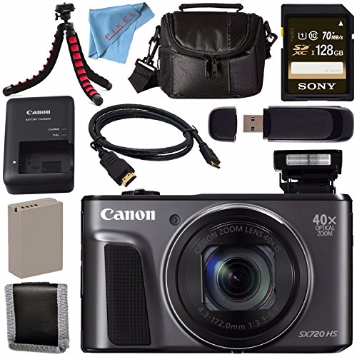 Canon PowerShot SX720 HS Digital Camera 1070C001 + NB-13L Lithium Ion Battery + External Rapid Charger + Sony 128GB SDXC Card + Micro HDMI Cable + Small Case + Memory Card Wallet Bundle