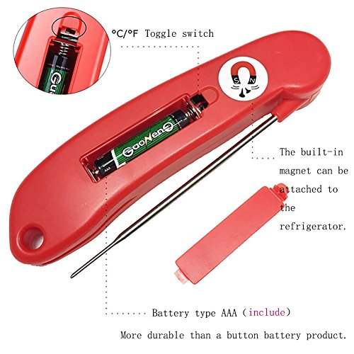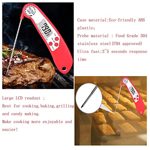 JumboDumbo Instant Read Meat Thermometer Digital Probe Grill Thermometer Fast Food Cooking Candy Kitchen Outdoor BBQ Thermometer(Red)
