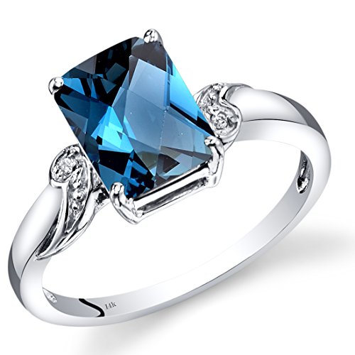 -. Feature : Natural London Blue Topaz, Radiant Cut, 9x7 mm, 2.5 Carats / Natural Diamonds, 2 pieces, Round Brilliant Cut, 0.01 Carats Total / Ring is in 14 Karat White Gold / Perfect Gift for Christmas, Mothers Day, Graduation, Birthdays, Weddings, Anniversary / Includes Gift Box and Money Back Guarantee
