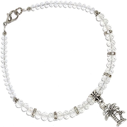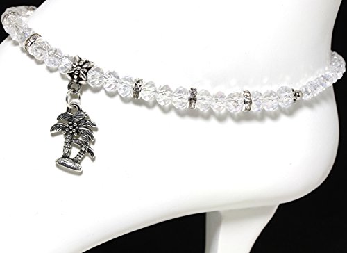 -. Title : AnsonsImages 9.5" Inches Anklet Bracelet Palm Tree Crystal Cut Beads Clear Rhinestones