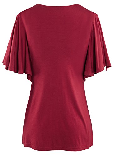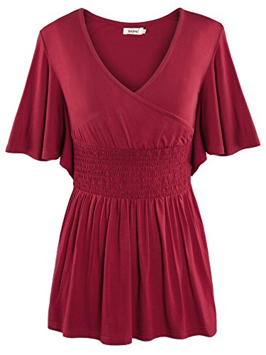 -. Title : Bepei Women V-neck Slimming Lotus Short-Sleeve Empire Waist Blouses