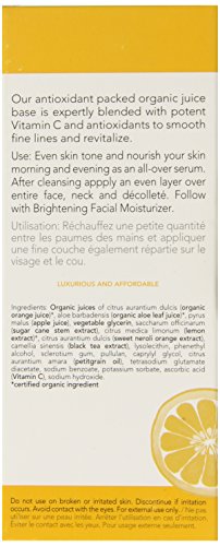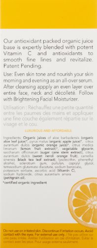 Healthy beauty. Brightening hydroxy-acids. Revitalizing and firming vitamin C. Line smoothing peptides. Made with certified organic ingredients. Patent pending organic juice base. Put your skin on a healthy diet of Juice Organics' age-defying, certified organic ingredients and you'll love the way your skin looks and feels. Powerful age-defying peptides, alpha lipoic acid, co-enzyme Q10, and vitamin antioxidants are expertly blended with a brightening hydroxy-acid complex of certified organic apple, lemon and raw cane sugar to even skin tone and texture, help smooth fine lines, revitalize and firm for healthy, beautiful skin. Juice Organics' patent pending base expertly blends certified organic juice concentrates to deliver powerful antioxidants, age-defying hydroxy acids, essential vitamins and nutrients Juice Organics' certified organic ingredients meet the strict guidelines of the USDA National Organic Program. No animal testing. 100% Vegetarian ingredients. Made in USA.Feature