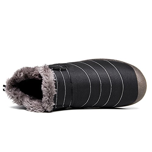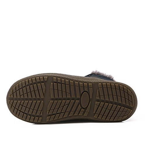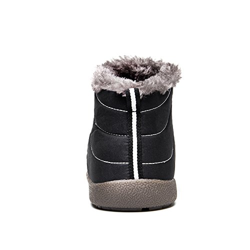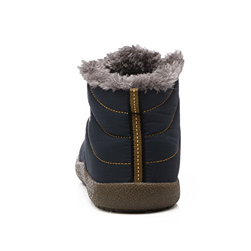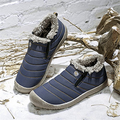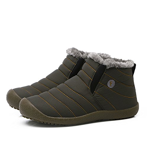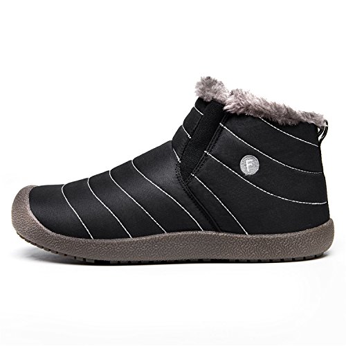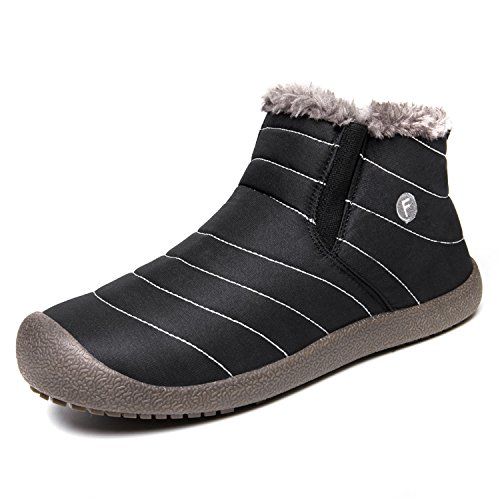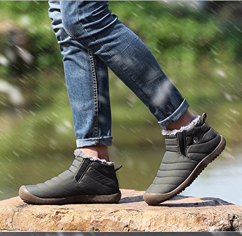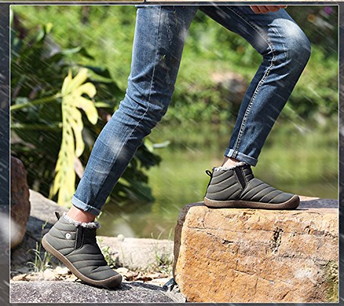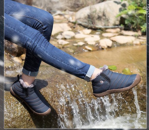 This boots features waterproof fabric upper, warm fur lining, and slip resistant, durable, rubber outsole. This weatherproof boots keep your feet warm and dry for those freezing days. Perfect fur lining keeps us warm in freezing winter. Durable Rubber sole and good-looking appearance. Always all-match with this ankle boots. Slip-on style makes the boots easy to take on/off.