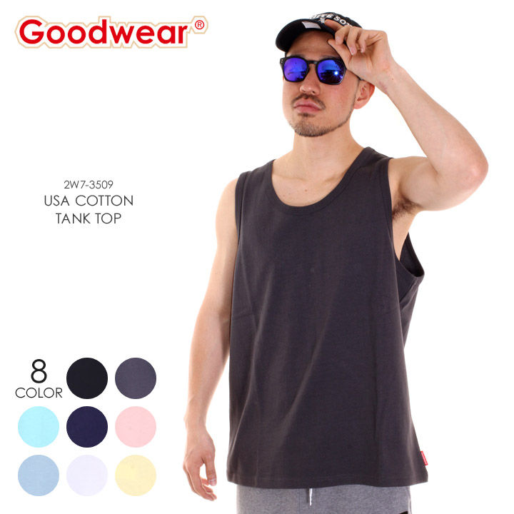 Goodwearのカラバリ豊富なタンクトップ。洗いをかけたこなれ感のある7オンスヘビーウェイトボディを使用。USAコットンならではの、着こむほどに味が出る独特の風合いがたまりません。夏場には透け対策や汗染み対策にも使える万能アイテム。インナーとしてはもちろん、しっかりとした生地感なので一枚で着てもかっこよく仕上がります!