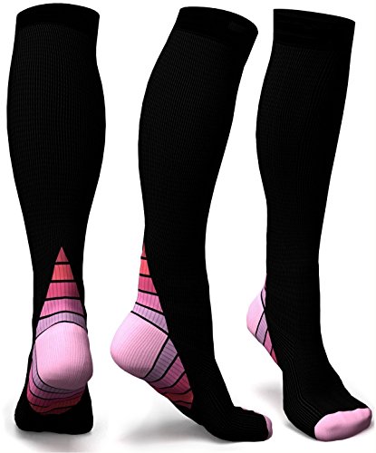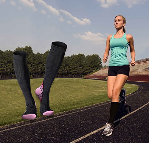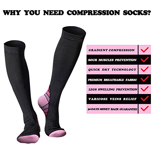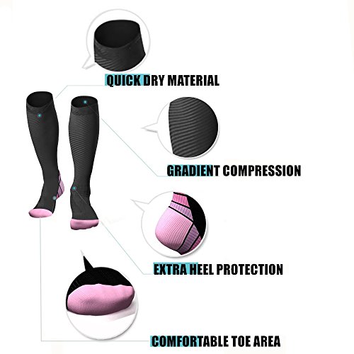 - GRADIENT COMPRESSION TECHNOLOGY PROTECTS YOUR FOOT&LEGS AND BOOST YOUR GRADES! Gradient compression gives blood return acceleration and decreases muscles stiffness. No matter which situation you are wearing them, in sporting time or daily work, remarkable effect in varicose veins relief and other leg swelling issues. Super comfortable and instant effect, toes get cozy space to move, heels, foot and calves get different compression force support immediately.