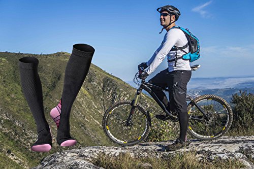 - RELIEF&PREVENT THE SOUR MUSCLES IN YOUR SPORTINGS, STANDING AND WALKING! We love jogging, running, cyclimg, hiking and other sporting, we need to stand up long and walk far distance in our work. Our legs get sour muscles and painful feelings, this compression sock fixes your leg muscles in a comfortable way, great sour muscles relief and excellent ventilation for your leg skin. Premium quality material and easy to get on.