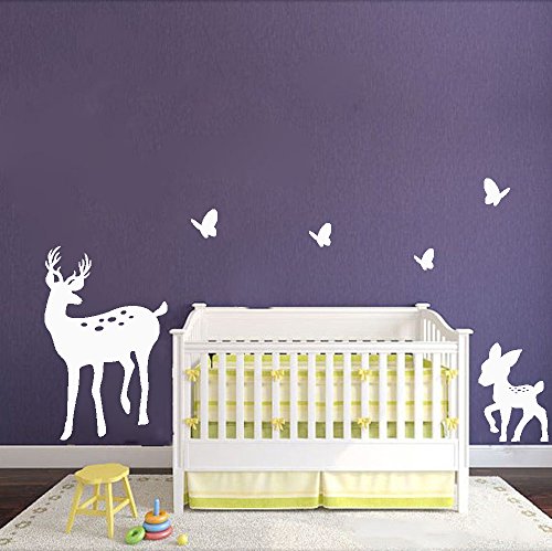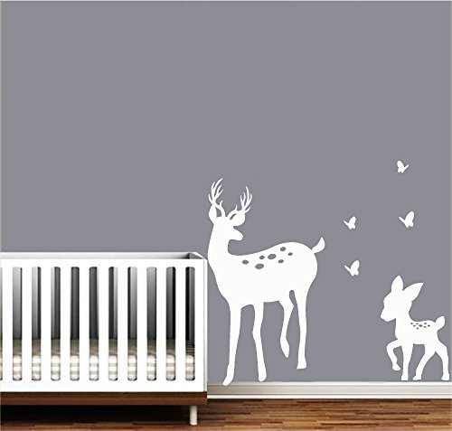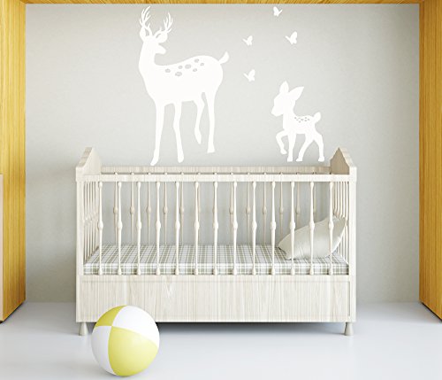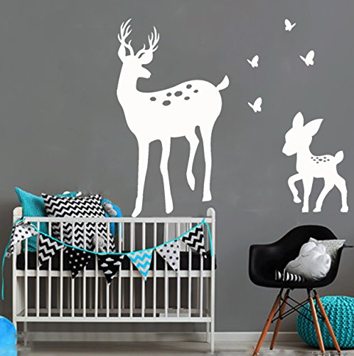 LUCKKYY Cute Parents and Baby Deer Wall Decal Vinyl Wall Sticker Baby Nursery Decor Kids Room (White)