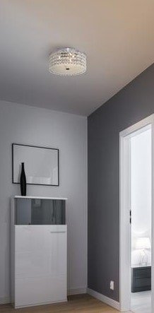 With elegant contemporary styling, the Glam Cobalt 3-Light Brushed Chrome Ceiling Light from Hampton Bay features decorative crystal glass beads and a white frosted glass diffuser. Great for display in bathrooms, bedrooms, kitchens and even hallways, this stunning and original ceiling light uses six G9 40-Watt light bulbs to cast a sparkling glow throughout your home. All hardware is included for flush-mount installation. Decorative beads and clear glass with durable chrome construction offer an elegant, sparkling display Hardware included for flush mount installation Uses six halogen G9 40-Watt bulbs (sold separately) Unique contemporary style offers modern flair for your home CSA and UL approvedFeature