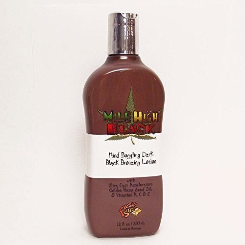 Mile High Black Dark Black Bronzing Lotion takes your tan to its highest limits with this radically advanced Hemp infused tanning formula designed for the most demanding tanner. - Experience deep dark tanning effects immediately after application with instant black bronzers ultra fast tan accelerators blended with a touch or sugar cane bronzers for the longest lasting bronze imaginable. Rich moisturisers Hemp oil and vitamins A C & E help make your skip trip a healthier one. T.H.C. drug free.