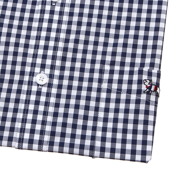 면100 소재의 우수한 촉감과 편안한 착용감이 특징인 깔끔한 깅엄체크 원단으로
