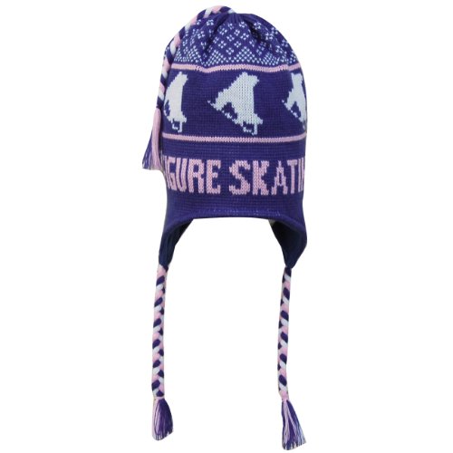 -. Title : ChalkTalkSPORTS Fleece Lined Knit Hat | Figure Skating Design Beanie | Aviator Winter Hat | Blue/Pink