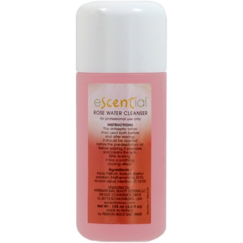Studio : Perron Rigot Publisher : Perron Rigot Binding : Health and Beauty Product Description Escential Wax Rosewater Cleanser cleans and disinfects the skin prior to waxing. Features a 9% alcohol content, which provides antiseptic benefits without drying out the skin. Its fresh rosewater fragrance to provide the skin with a comfortable feeling. Use after wax treatments to help with skin recovery and for further cleansing. 0