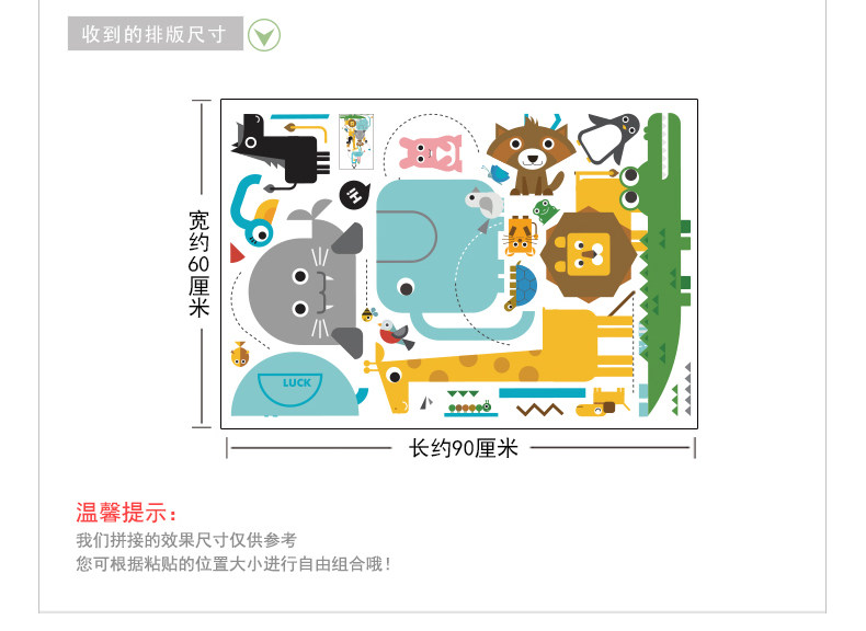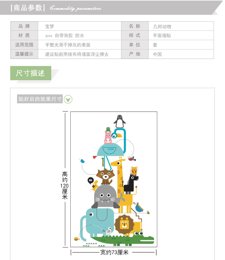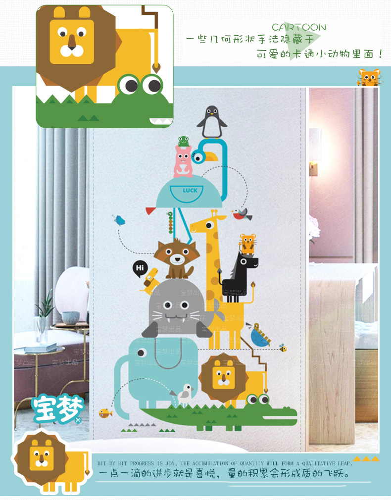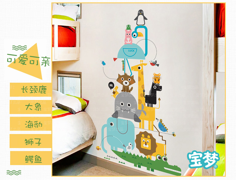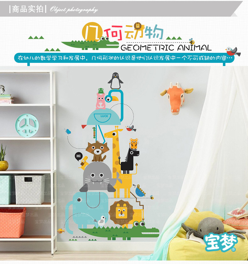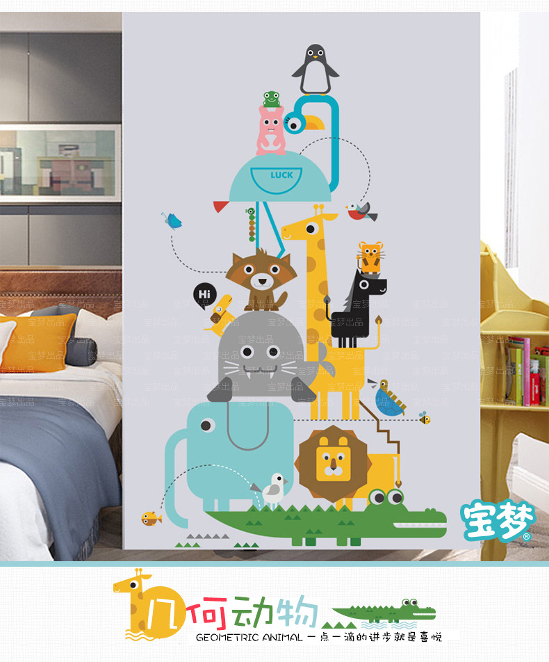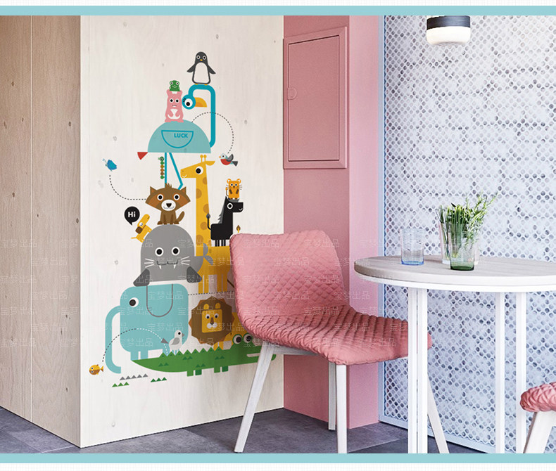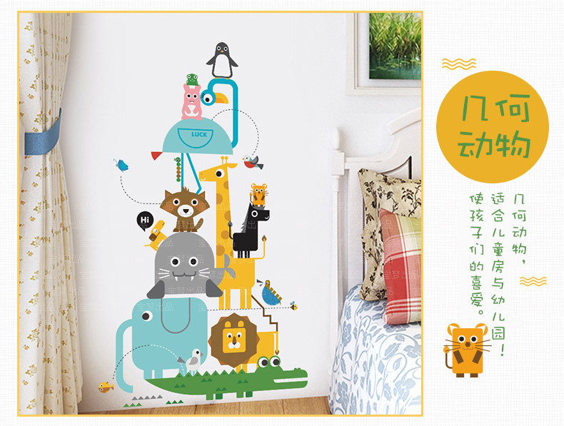 卡通儿童房卧室几何动物自粘墙贴纸可爱幼儿园走廊玄关装饰品贴画