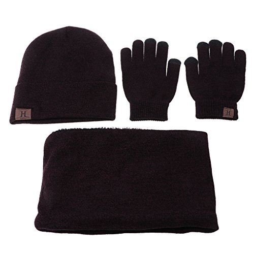 100% brand new and high quality Features: This set is the perfect winter set to keep you warm and toasty during those cold winter months. Fashionable design, make you distinctive and characteristic. Exquisite craft, the thicker fleece lining will effectively keep you warm. Knitted hat, scarf and gloves will fully keep you away from cold; stay warm all the time, great for winter. The gloves can touch screen, so you can wear them to play games in winter, warm and comfortable. Wide Application- Perfectly suitable for various occasions, like party, travelling or outdoors, etc. It's a good gift for your lover. You can also present this perfect winter knitted set to your relatives or good friends, and enjoy the good time in winter. Specification: Material: Acrylic Knit Size of Hat: app.20cmx21cm/7.87'x8.27' Size of Scarf: app.18cm/7.09' Size of Gloves: 11cmx21cm/4.33'x8.27' Color: Black,Deep Gray,Middle Gray,Wine Red Quantity: 1 Set Note: 1.Please allow 1-3cm error due to manual measurement. pls make sure you do not mind before you bid. 2.Due to the difference between different monitors, the picture may not reflect the actual color of the item. Thank you! Package includes(without retail package): 1 x Scarf 1 x Beanie 1 x Pair of Touchscreen Gloves 0