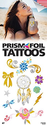 Prism Foil Metallic Temporary Tattoos, ten 3.5" by 2.5" sheets, beautiful foil metallic tattoos