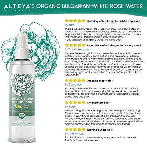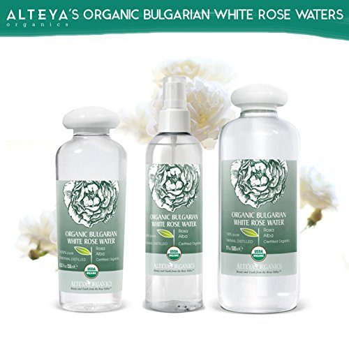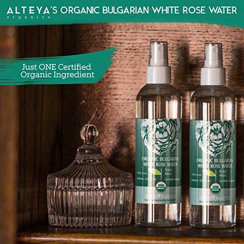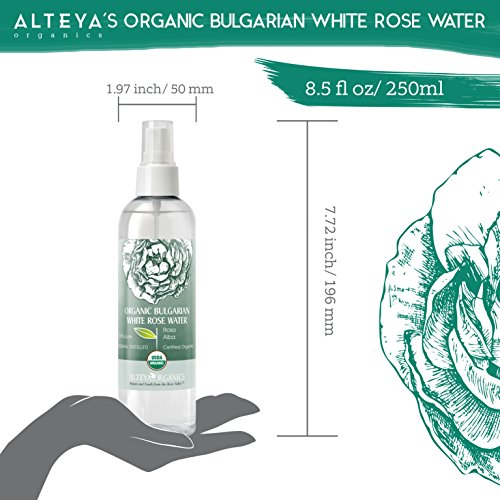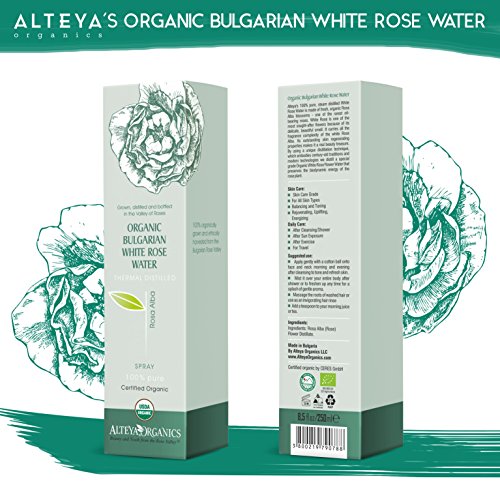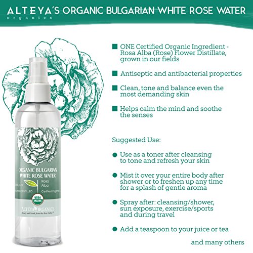 Contains ONLY 100% pure organic certified Bulgarian White Rose Water steam-distilled from fresh Rosa Alba petals