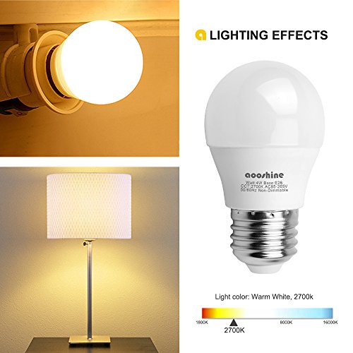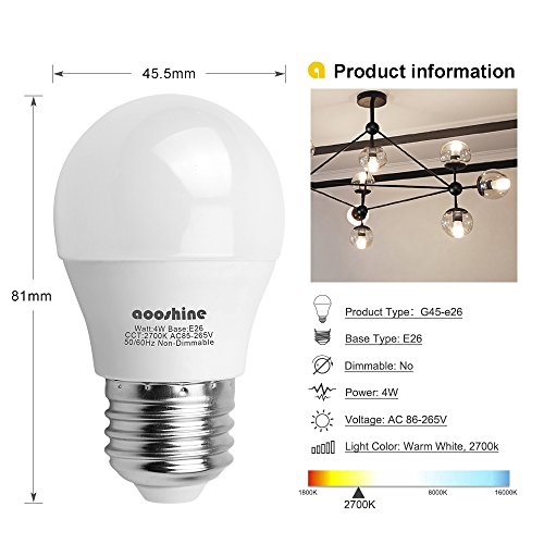- ✔ENERGY SAVING ☛Save up 90% on your electricity bill. Aooshine 4W G45 Globe led light bulb emits 400 lumen of brightness, very high lighting efficacy and little heat generation, Replace traditional 40W A15 light bulb with standard E26 base.