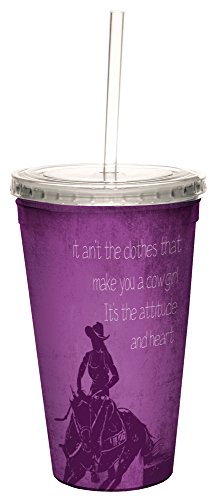 Tree-Free Greetings 98142 Cowgirl Attitude Double-Walled Cool Cup with Reusable Straw, 16-Ounce