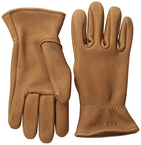Studio : Red Wing Shoes Publisher : Red Wing Shoes Binding : Apparel Product Description Our buckskin unlined leather gloves are crafted with 3.25 oz. Chrome tanned deerskin leather and tanned in a similar style as our Red Wing Heritage leathers. They are designed for maximum comfort and mobility using the gunn cut Palm pattern and key stone thumb assembly. Features include a double layer of leather, with multiple lines of stitching to reinforce areas of major wear. Note: we recommend purchasing the gloves slightly snug, as the chrome tanned leather will stretch slightly to create the perfect fit over time. 0