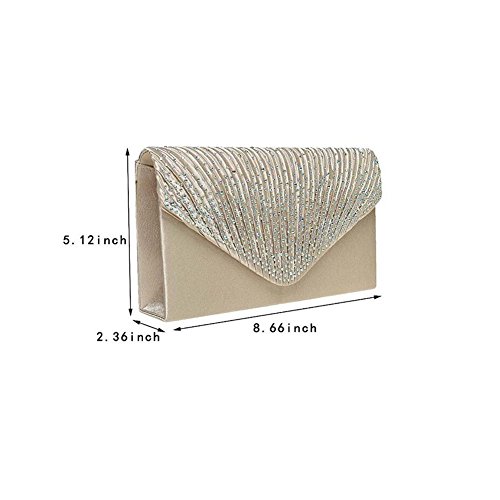 -. Brand : Jingyingstore -. ClothingSize : Medium -. Department : womens -. Feature : Material:Satin / Sparkling rhinestone flap / One slide pocket inside / A detachable chain allows you to wear or carry this evening bag. / Measurement is app 21x13x5cm(8.27x5.12x1.97inch). -. ProductGroup : Shoes -. ProductTypeName : HANDBAG -. Size : Medium -. Title : Jingying Women Evening Satin Bridal Diamante Ladies Clutch Bag Party Prom Envelope