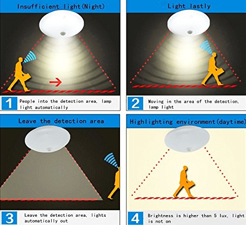 - Built-in Light Sensing Device, the motion sensor light can automatic identifies the status of day and night. Automatic standby during the day and induce light at night.