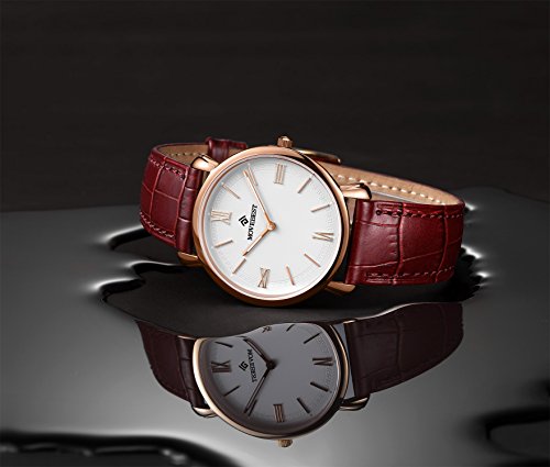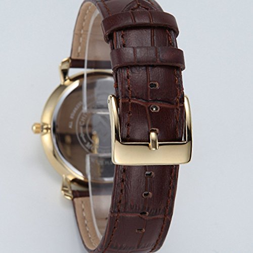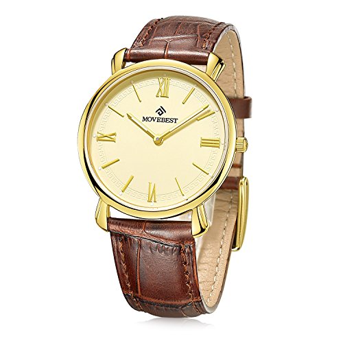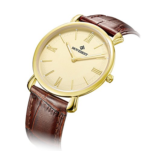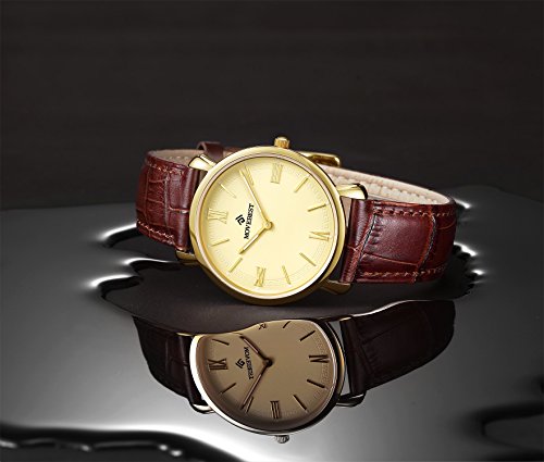 -. Feature : PRECISE TIME KEEPING - Classy ultra-thin watch design, With a Japanese MIYOTA quartz movement keeps precise time, the sleek and professional style watch is quite suitable for any occasion. / SCRATCH RESISTANT - The 38mm stainless steel case watch comes with a sapphire glass that is scratch & scrape resistant. / LEATHER STRAP - Brown genuine calfskin band with contrast stitching and buckle closure,soft, durable material provide comfortable wearing experience. / WATER RESISTANT to 50m (165 ft) - Suitable for short periods of recreational swimming, but not diving or snorkeling. / WARRANTY - 30 days money back program for any reason, 2 years free maintenance for quality issues. , If you have any problems, please feel free to contact our customer service team.