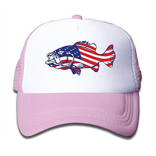 (LIN JIE GUN)/Accessories/Hats/DIRECT FROM USA/American Flag Fish Boys Girls Hats Snapback Mesh Cap Adjustable Baseball Caps Kid's Trucker Hat Pink