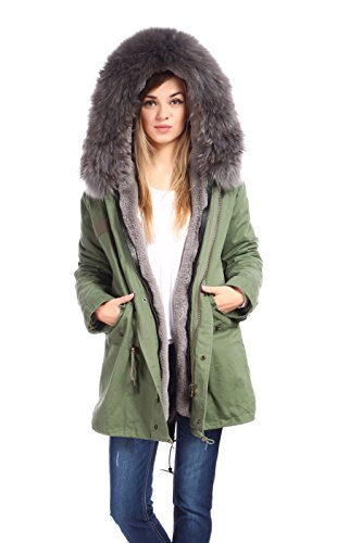 Womens Mens Army Hood Parka Jacket With Large Real Entire Racoon Fur Hood Winter Over Coat
