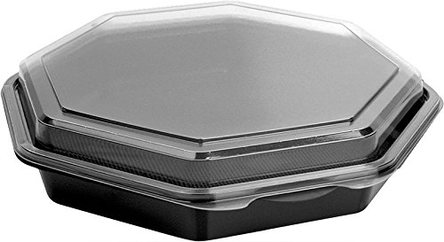 SOLO 864611-PS94 Creative Carryouts OctaView Polystyrene Hinged Cold Food Container, Octagonal, 9.6" x 9.2" x 2", Black/Clear (Pack of 100)