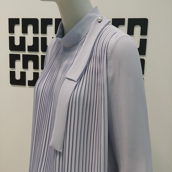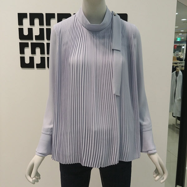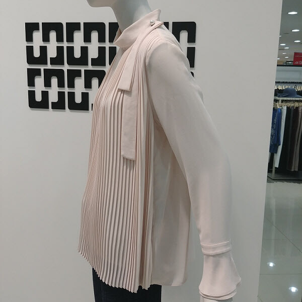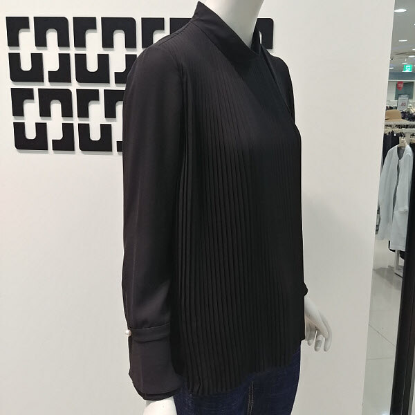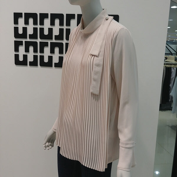 여성스럽고 깔끔한 플리츠 디테일에 살짝 올라오는반넥 디자인으로 로맨틱한 감성의 블라우스 입니다소매가 살짝 와이드한 라인으로 더욱 여성스럽고스커트나 깔끔한 슬랙스와 코디하기 좋습니다어깨 옆에는 끈 디테일이 탈 부착 가능 합니다 424 2/1 인치 기장입니다