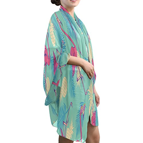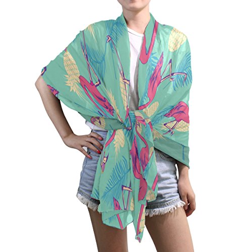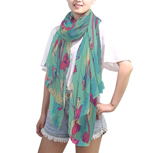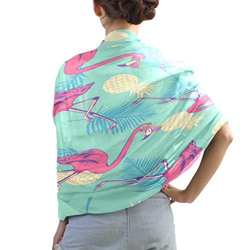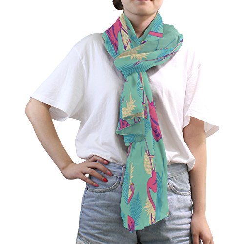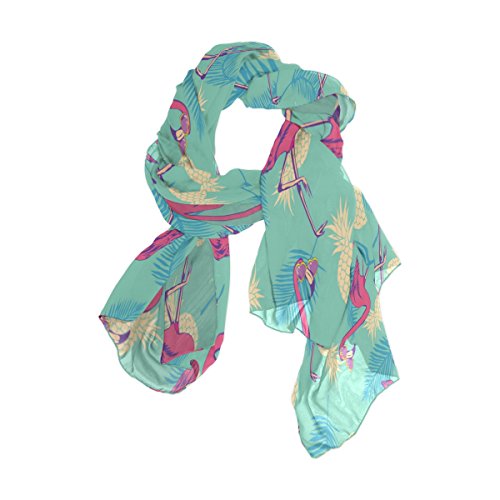(ALAZA)/Accessories/Cold Weather Accessories/DIRECT FROM USA/ALAZA Vintage Flamingo Bird Pineapple Chiffon Silk Long Scarf Shawl Wrap