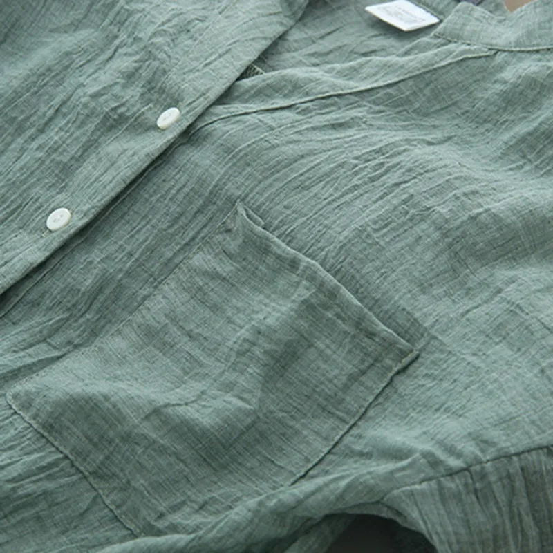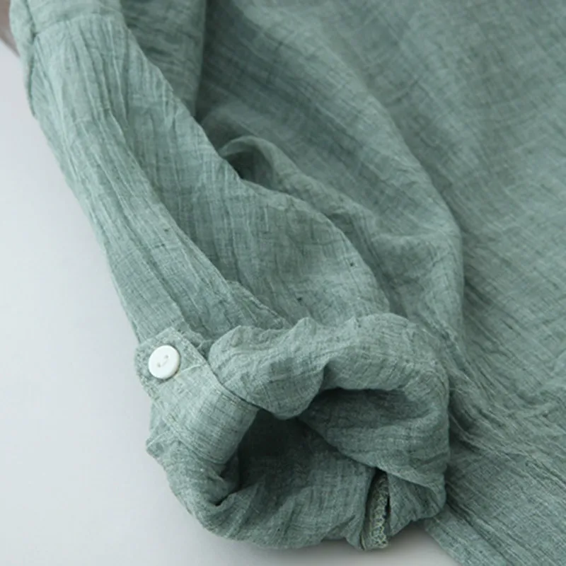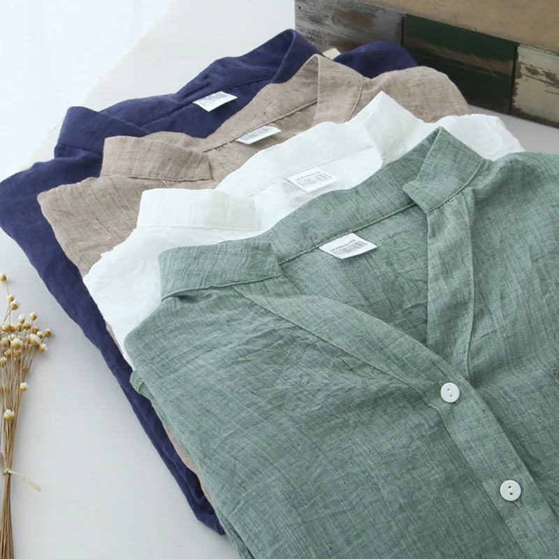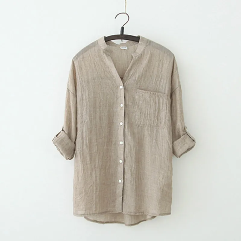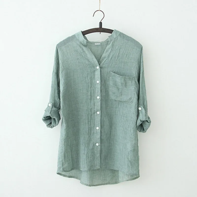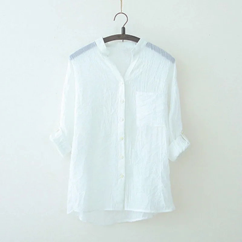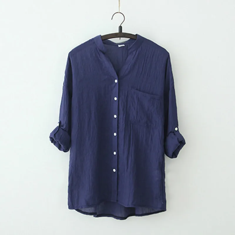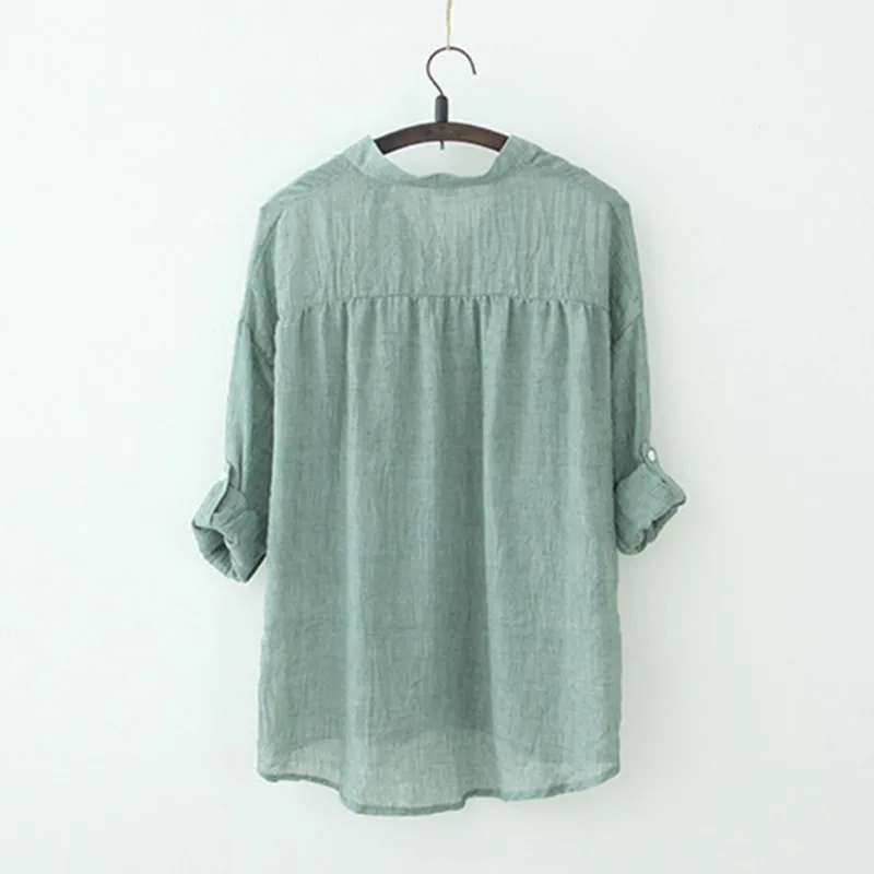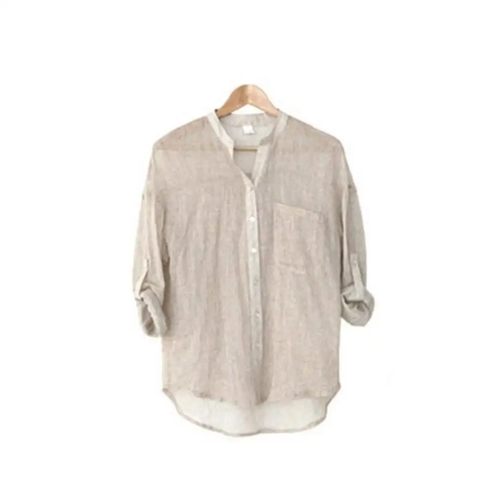 product name:Fashion Women Blouse Three Quarter Sleeves Cotton Hemp Shirt Solid Col