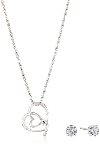 -. Feature : Necklace: 18"L x 0.65"H x 0.65"W; Earrings: 0.2"H x 0.2"W / Enjoy the meticulous cut and brilliant shine of cubic zirconia in this jewelry set, which includes dazzling stud earrings and an elegantly curved heart pendant necklace. / Necklace Measurements: length - 18", pendant height - 0.64", pendant width - 0.57" / Earring Measurements: height - 0.19", width - 0.19" / Crafted in .925 sterling silver / Imported