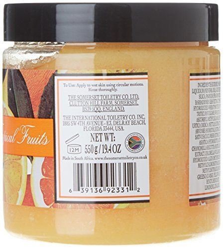 Gently exfoliate with Tropical Fruits Sugar Scrub to reveal instantly smoother, healthy skin. Remove impurities with our exfoliating scrub. By cleaning away excess oil and dirt, skin becomes radiant and less prone to blemishes. Tropical Fruits fragrances offer something for everyone, with a selection zesty, sweet, tangy and rich scents to choose from. Choose from Mango & Passion Fruit, Strawberry & Papaya, Grapefruit & Orange and Coconut & Lime. This tub of fruity, exotic bliss is sure to brighten up your beauty regimen. With four exotic fragrances to choose from, you can carry a little bit of summer with you all year round.